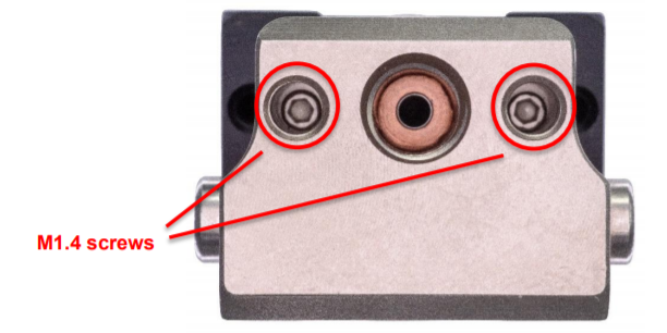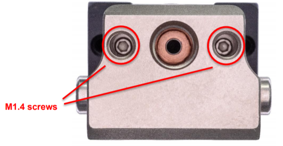 - Use the 1.27 mm hex key to remove the M1.4 socket head cap screws in the bottom of the hot block (Figure 2).